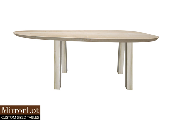$5529 for 111x57 inch Table. This Winslow table has a beveled knife edge unique round shape tabletop with natural maple finish and natural poplar table legs and can be use as collaboration table, solid wood table built to order, and more. For many people, this table tends to blend function as well as presence in a way that feels effortless without complication. In active households, the solid wood surface feels substantial as well as reassuring under hand, signaling quality and stability without drawing attention. In spaces that change over time, the surface invites both tactile interaction along with visual appreciation, making meetings or meals more engaging over time.