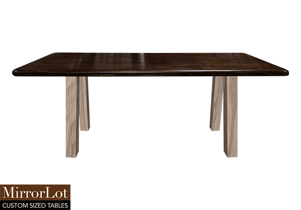 $5339 for 111x58 inch Table. This Burke table has bronze walnut stained finish tabletop and natural red oak table legs and can be use as custom wood table, custom built wood table, and more. In real-world settings, this 111 inch table feels like a stable foundation for everyday use across different routines. The table smoothly supports long sessions comfortably without feeling imposing or overwhelming.
