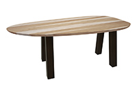 $6859 for 114x60 inch or 9.5 ft Table. This Katy table has a round shape tabletop with natural american walnut finish and black table legs and can be use as japanese chabudai table, solid wood table, and more. The table feels both strong while also approachable, balancing function with visual impact. There is a subtle warmth in the wood grain that balances its professional presence. The table intentionally feels built for repetition, comfort, and consistency.