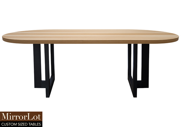 $4729 for 115x46 inch Table. This Laurel table has a oval shape tabletop with natural spanish cedar finish and black table legs and can be use as café table, square table, and more. At this size, the table feels grounded along with intentional from the moment it enters a space. Its scale allows participants to spread out comfortably, maintaining personal space without sacrificing group cohesion.