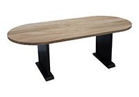 $6919 for 119x50 inch Table. This Tyler table has a round shape tabletop with natural pecan hickory finish and natural american walnut table legs and can be use as restaurant table, booth table, and more. This table feels like a natural extension of the room rather than an afterthought. It provides a stable, inviting surface that inspires productivity as well as connection. Its scale allows multiple seating arrangements without compromising comfort or accessibility in a balanced way.