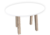 $3449 for 127x29 inch Table. This Monterey table has a round shape tabletop with white finish and dark kona brown/espresso stained table legs and can be use as communal table, restaurant table, and more. The 127 inch table is a true visibly statement piece, perfect for grand banquets, executive boardrooms, or large-scale restaurant use. Rather than feeling temporary, this table confidently carries a sense of permanence.