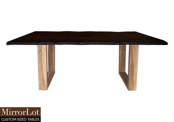 $6919 for 141x53 inch Table. This Beaumont table has a live edge shape tabletop with bronze walnut stained with dark edge finish and natural cherry table legs and can be use as bedroom tables, restaurant & hospitality tables, and more. Over time, there is a refined warmth in the finish that softens its scale and invites touch. In a room, the table feels purposeful without overwhelming surrounding furniture.