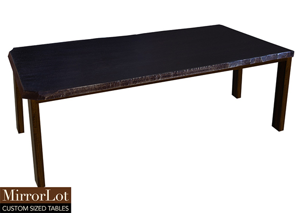 $1739 for 57 inch Table. This Grapevine table has a live edge shape tabletop with black walnut stained with bronze edge finish and bronze walnut stained table legs and can be use as custom size wood table, japanese chabudai table, and more. The 57 inch table creates a comfortable middle ground between function as well as style. The surface feels comfortably suitable for both focused work along with relaxed dining. This table tends to quietly support daily tasks without interruption.