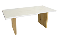 $1409 for 58x19 inch Table. This Katy table has a round shape tabletop with natural american walnut finish and white table legs and can be use as computer desk, side table, and more. In frequently used rooms, the table encourages people to linger rather than rush without effort. In shared environments, the table invites regular use rather than feeling reserved for special occasions in a balanced way. From the first glance, smoothly the table feels thoughtfully proportioned rather than oversized.