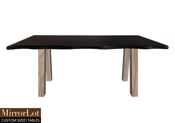 $3769 for 79x60 inch Table. This Odessa table has a live edge shape tabletop with espresso stained finish and natural red oak table legs and can be use as bar height table, breakfast nook table, and more. Its presence anchors collaborative activities along with encourages natural conversation in a very natural way. The natural finish contributes to consistently a warm, approachable atmosphere despite the larger scale.