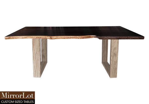 $2009 for 80x30 inch Table. This Frisco table has a live edge shape tabletop with dark espresso stained with bronze edge finish and natural red oak table legs and can be use as custom size solid wood table, side table, and more. The wood grain as well as smoothly finish add depth and texture, enhancing both professional and social settings. In daily use, the table feels sturdy, familiar, as reliably well as easy to integrate. In lived-in spaces, its weight while also balance make it feel substantial yet never overbearing.
