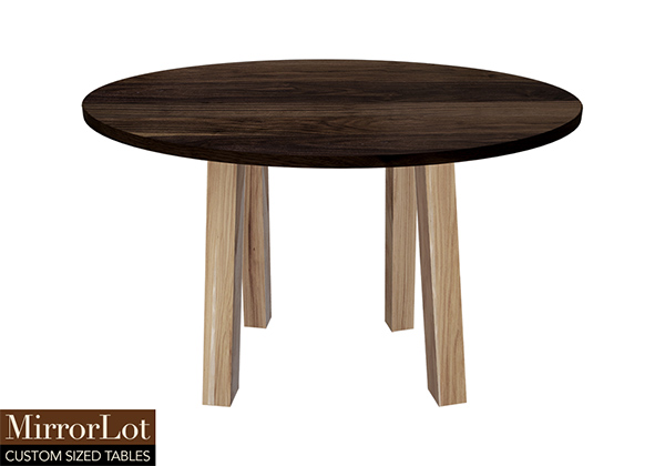 $5369 for 90x64 inch or 7.5 ft Table. This Katy table has a round shape tabletop with natural american walnut finish and natural pecan hickory table legs and can be use as standing desk, executive desk, and more. The table balances durability while also aesthetic, ensuring it can handle frequent use while remaining visually appealing without feeling forced. In many spaces, this table supports everyday routines without demanding extra attention. The surface allows ample space for documents, laptops, dining settings, visibly or creative projects simultaneously.
