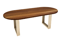 $4209 for 99x49 inch Table. This Bowie table has dark walnut bronze stained finish tabletop and natural maple table legs and can be use as boat-shaped table, custom wood table, and more. The wood finish contributes depth while also subtlety that enriches the sensory experience of the space without feeling excessive. From day to day, the wood surface feels intentional, substantial, as well as inviting.