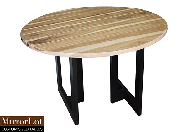 This natural hickory table brings rustic charm to any room in your house. It is a circle table, but can be customized to your desired shape and size. The round shape table top is made from solid pecan hickory wood and the table legs are