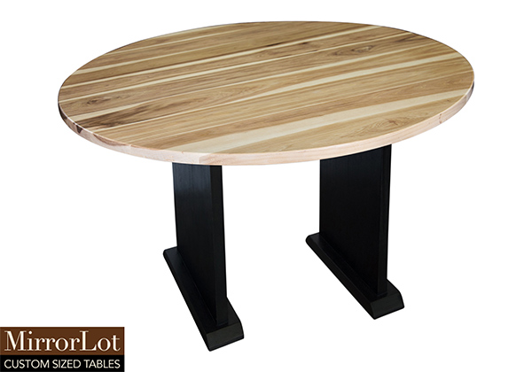 This natural hickory table brings rustic charm to any room in your house. It is a circle table, but can be customized to your desired shape and size. The round shape table top is made from solid pecan hickory wood and the table legs are