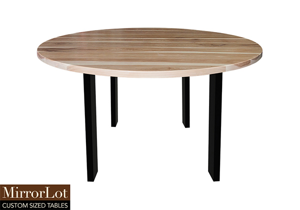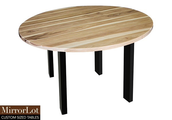 This natural hickory table brings rustic charm to any room in your house. It is a circle table, but can be customized to your desired shape and size. The round shape table top is made from solid pecan hickory wood and the table legs are