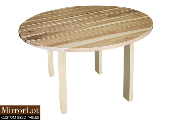 This natural hickory table brings rustic charm to any room in your house. It is a circle table, but can be customized to your desired shape and size. The round shape table top is made from solid pecan hickory wood and the table legs are