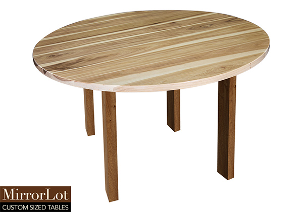 This natural hickory table brings rustic charm to any room in your house. It is a circle table, but can be customized to your desired shape and size. The round shape table top is made from solid pecan hickory wood and the table legs are