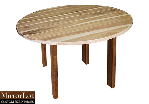 This natural hickory table brings rustic charm to any room in your house. It is a circle table, but can be customized to your desired shape and size. The round shape table top is made from solid pecan hickory wood and the table legs are