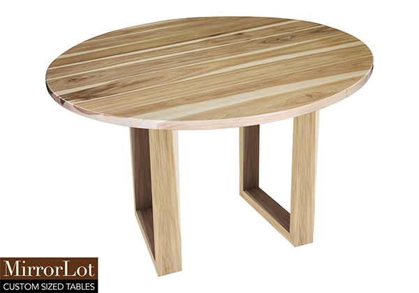 This natural hickory table brings rustic charm to any room in your house. It is a circle table, but can be customized to your desired shape and size. The round shape table top is made from solid pecan hickory wood and the table legs are