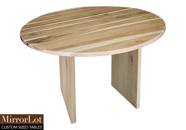 This natural hickory table brings rustic charm to any room in your house. It is a circle table, but can be customized to your desired shape and size. The round shape table top is made from solid pecan hickory wood and the table legs are