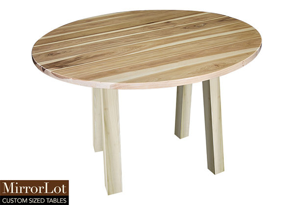 This natural hickory table brings rustic charm to any room in your house. It is a circle table, but can be customized to your desired shape and size. The round shape table top is made from solid pecan hickory wood and the table legs are