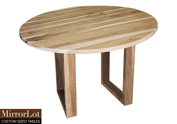 This natural hickory table brings rustic charm to any room in your house. It is a circle table, but can be customized to your desired shape and size. The round shape table top is made from solid pecan hickory wood and the table legs are