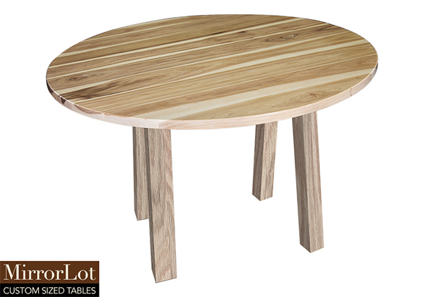 This natural hickory table brings rustic charm to any room in your house. It is a circle table, but can be customized to your desired shape and size. The round shape table top is made from solid pecan hickory wood and the table legs are