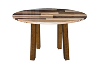 This mixed wood table is a combination of walnut and pecan hickory. It displays a contemporary design with a rustic flair. It is a round table, but can be customized to your desired shape and size. The round shape table top is made from solid walnut, pecan hickory wood and the table legs are