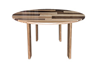 This mixed wood table is a combination of walnut and pecan hickory. It displays a contemporary design with a rustic flair. It is a round table, but can be customized to your desired shape and size. The round shape table top is made from solid walnut, pecan hickory wood and the table legs are