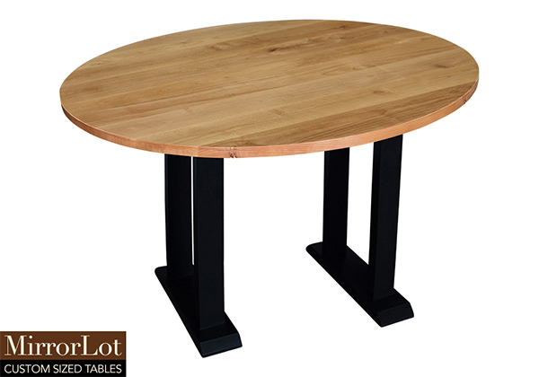 This natural alder table brings rustic charm to any room in your house. It is oval with a beveled edge, but can be customized to your desired shape and size. The round shape table top is made from solid rustic alder wood and the table legs are