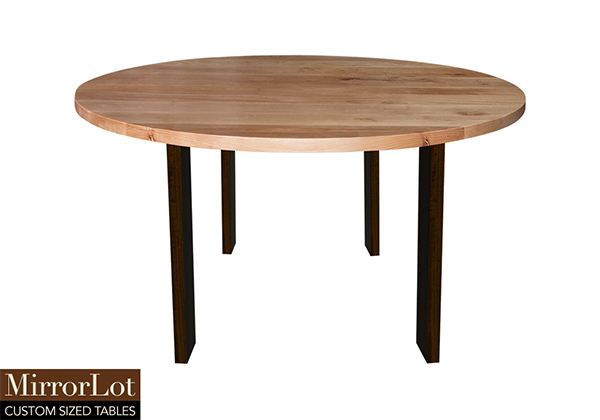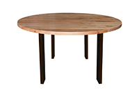 This natural alder table brings rustic charm to any room in your house. It is oval with a beveled edge, but can be customized to your desired shape and size. The round shape table top is made from solid rustic alder wood and the table legs are