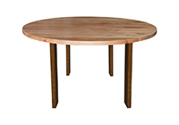 This natural alder table brings rustic charm to any room in your house. It is oval with a beveled edge, but can be customized to your desired shape and size. The round shape table top is made from solid rustic alder wood and the table legs are