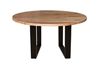 This natural alder table brings rustic charm to any room in your house. It is oval with a beveled edge, but can be customized to your desired shape and size. The round shape table top is made from solid rustic alder wood and the table legs are