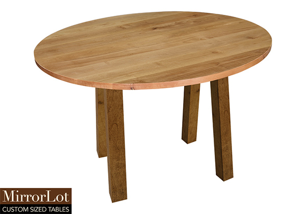 This natural alder table brings rustic charm to any room in your house. It is oval with a beveled edge, but can be customized to your desired shape and size. The round shape table top is made from solid rustic alder wood and the table legs are