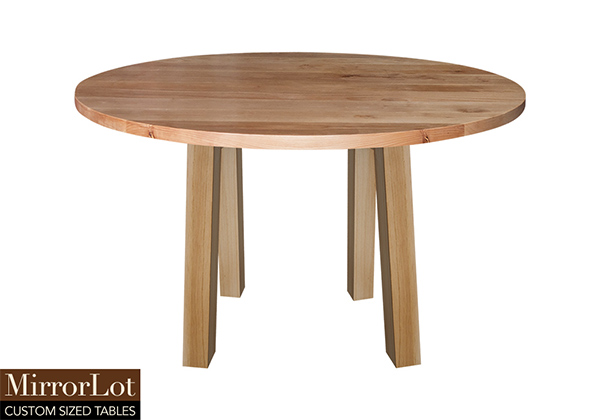 This natural alder table brings rustic charm to any room in your house. It is oval with a beveled edge, but can be customized to your desired shape and size. The round shape table top is made from solid rustic alder wood and the table legs are