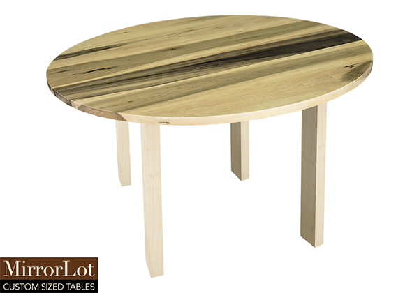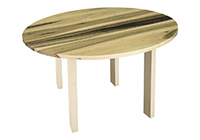 This natural poplar table brings rustic charm to any room in your house. It is a round table, but can be customized to your desired shape and size. The round shape table top is made from solid poplar wood and the table legs are
