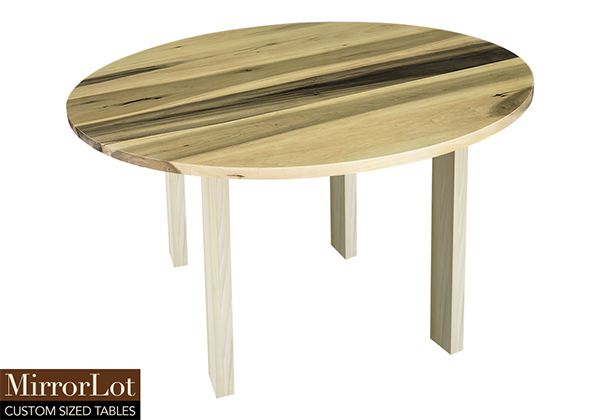 This natural poplar table brings rustic charm to any room in your house. It is a round table, but can be customized to your desired shape and size. The round shape table top is made from solid poplar wood and the table legs are