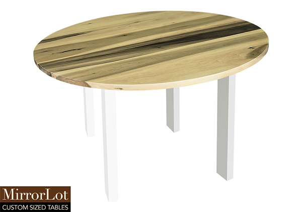This natural poplar table brings rustic charm to any room in your house. It is a round table, but can be customized to your desired shape and size. The round shape table top is made from solid poplar wood and the table legs are