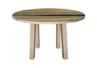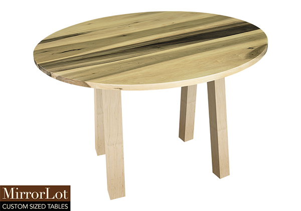 This natural poplar table brings rustic charm to any room in your house. It is a round table, but can be customized to your desired shape and size. The round shape table top is made from solid poplar wood and the table legs are