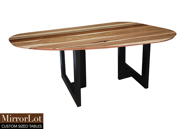 Wood & finish: Natural walnut, mahogany, and pecan hickory table top and black table legs
