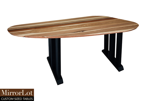 Wood & finish: Natural walnut, mahogany, and pecan hickory table top and black table legs