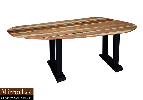 Wood & finish: Natural walnut, mahogany, and pecan hickory table top and black table legs