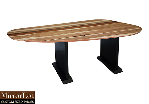 Wood & finish: Natural walnut, mahogany, and pecan hickory table top and black table legs