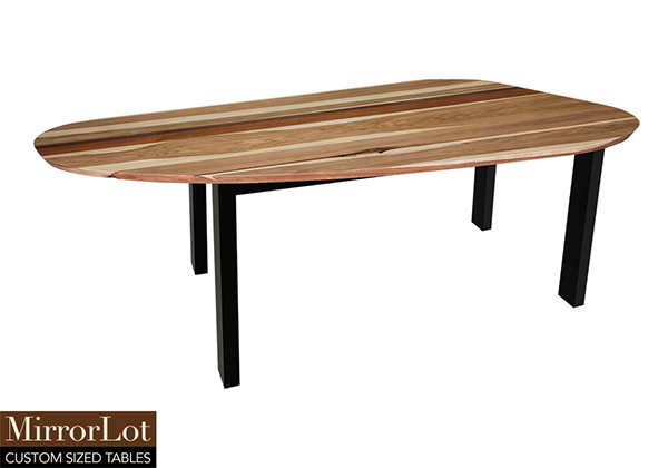 Wood & finish: Natural walnut, mahogany, and pecan hickory table top and black table legs