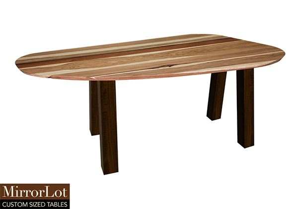 Wood & finish: Natural walnut, mahogany, and pecan hickory table top and bronze walnut stained table legs