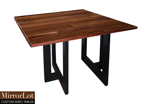 This natural mahogany table brings rustic charm to any room in your house. It is square, but can be customized to your desired shape and size. The square shape table top is made from solid mahogany wood and the table legs are