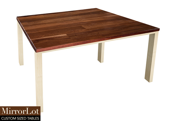 This natural mahogany table brings rustic charm to any room in your house. It is square, but can be customized to your desired shape and size. The square shape table top is made from solid mahogany wood and the table legs are
