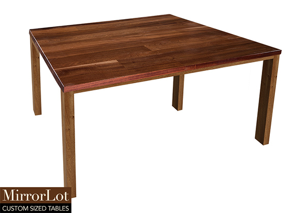This natural mahogany table brings rustic charm to any room in your house. It is square, but can be customized to your desired shape and size. The square shape table top is made from solid mahogany wood and the table legs are