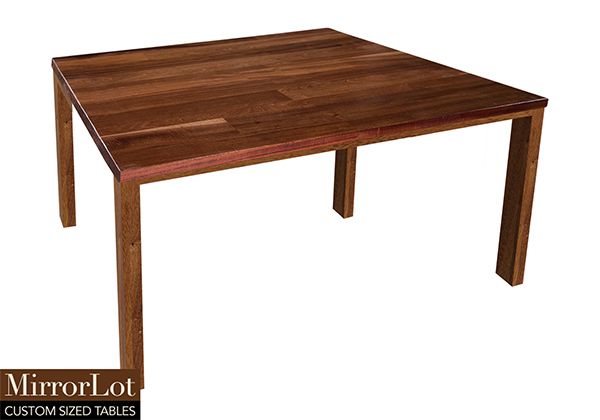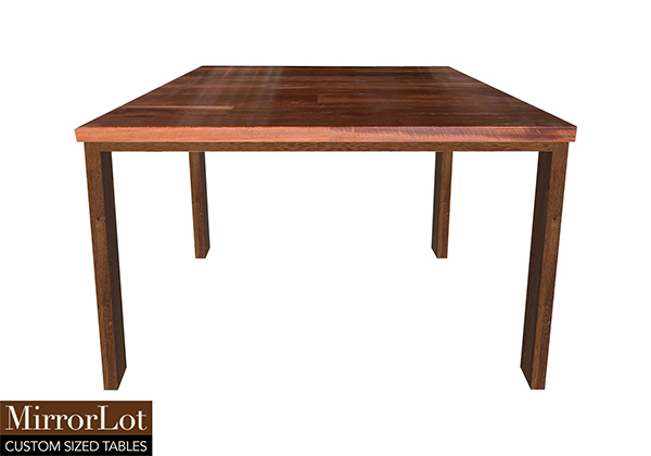 This natural mahogany table brings rustic charm to any room in your house. It is square, but can be customized to your desired shape and size. The square shape table top is made from solid mahogany wood and the table legs are