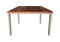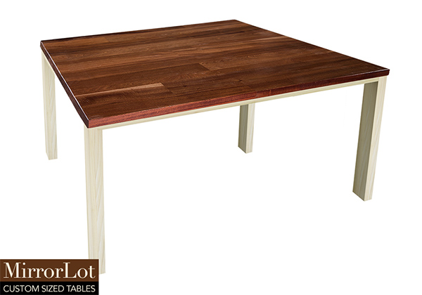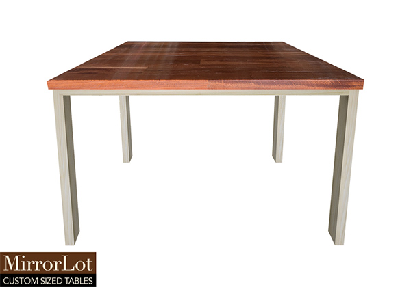 This natural mahogany table brings rustic charm to any room in your house. It is square, but can be customized to your desired shape and size. The square shape table top is made from solid mahogany wood and the table legs are