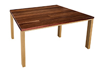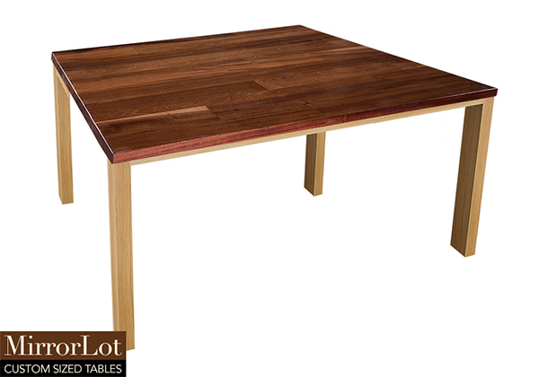 This natural mahogany table brings rustic charm to any room in your house. It is square, but can be customized to your desired shape and size. The square shape table top is made from solid mahogany wood and the table legs are