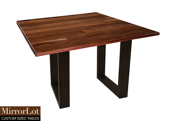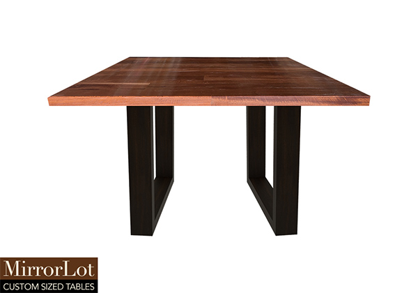 This natural mahogany table brings rustic charm to any room in your house. It is square, but can be customized to your desired shape and size. The square shape table top is made from solid mahogany wood and the table legs are