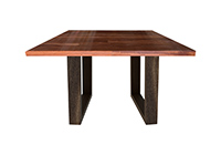This natural mahogany table brings rustic charm to any room in your house. It is square, but can be customized to your desired shape and size. The square shape table top is made from solid mahogany wood and the table legs are